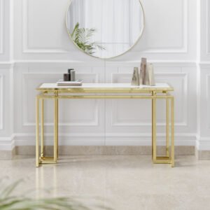 Aparador decorativo com estrutura em aço inox.